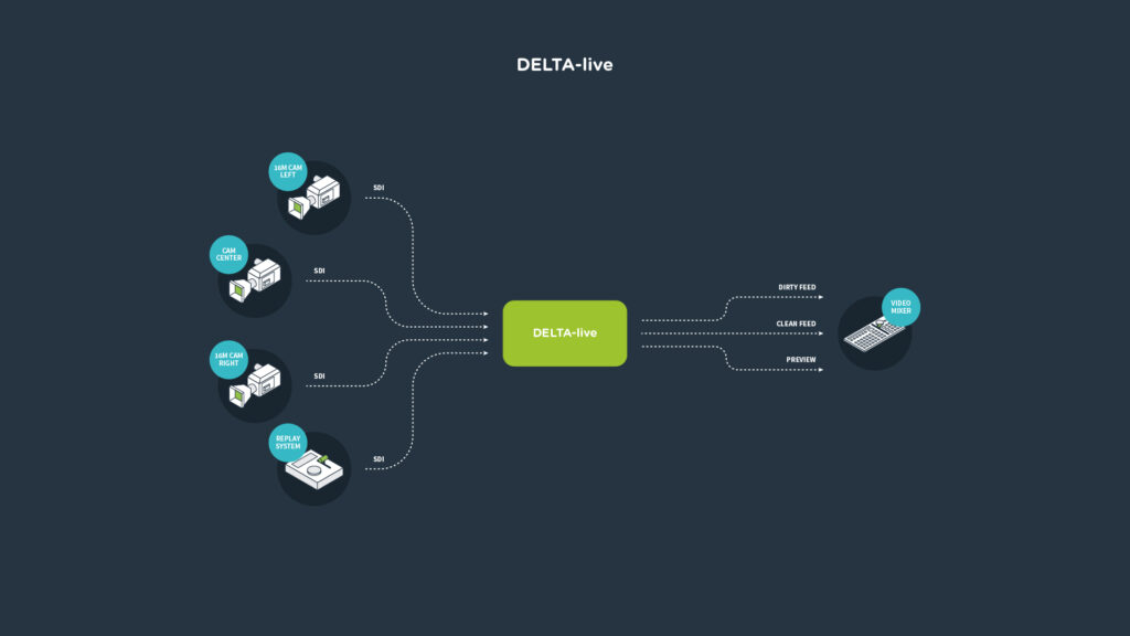 At the core of DELTA-live are professional, high-end I/O boards developed in-house and renowned worldwide for their quality and reliability. These boards are designed to optimize overall latency, enabling DELTA-live to minimize the delay between production cameras and the augmented signal output.