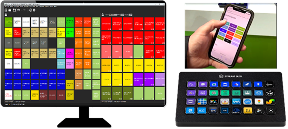 The launchpads feature enables quick triggering of multiple actions with a single click. This streamlines workflows for smooth, uninterrupted broadcasts. Buttons can be assigned to any DELTA-stadium action, creating custom panels accessible on physical devices (e.g., Stream Deck) or remotely via smartphone.