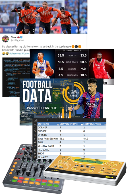 The solution also offers native compatibility with third-party content providers such as STATS-PERFORM, giving you access to a wealth of professional data. Engage your audience like never before by incorporating fan reactions through our social media aggregation and moderation module. You can also connect directly to official referee scoring tables to enable accurate real-time updates for scores, clocks, and other essential game data.