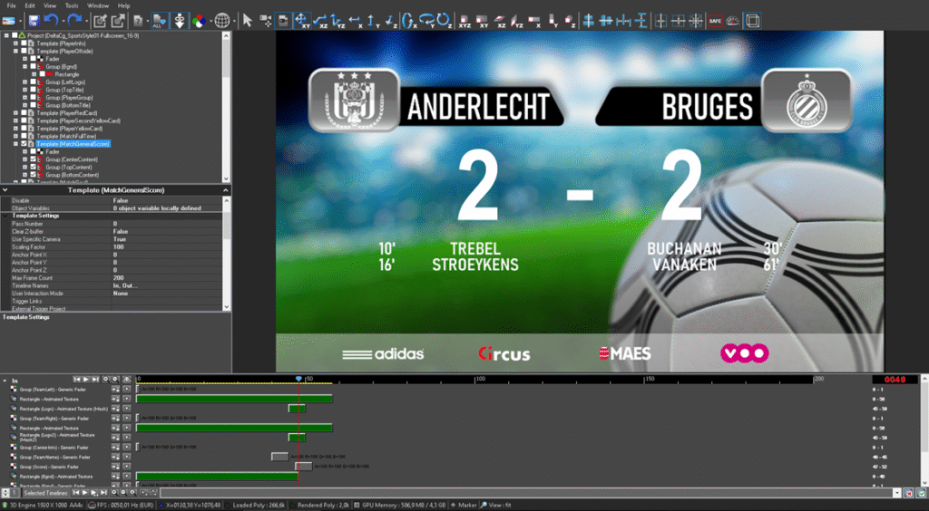 In addition, the system includes a powerful graphics template editor, match score management, integration with external data sources and third-party providers, as well as social media content integration. Moreover, it gives full control of lighting, sound, and pyrotechnics — all within a scalable, fully redundant, all-in-one solution.
